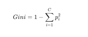 This metric calculates how often a randomly chosen element from your dataset would be misclassified if you randomly labeled it based on the distribution in that node. The formula is defined as: